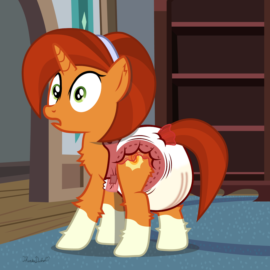 Sorry for the delay. I think Stellar Flare is the most unlikely of ponies to be wearing diapers, but I can see the appeal for her. Having too much stress and needing to find a way to unwind.