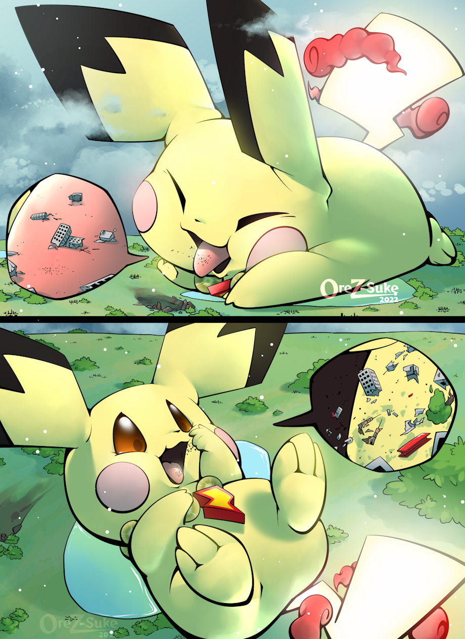 A large smoliv accidentally step over part of a city, panic from his mistake and then just accidentally destroy another nearby city from his anxiousness!
