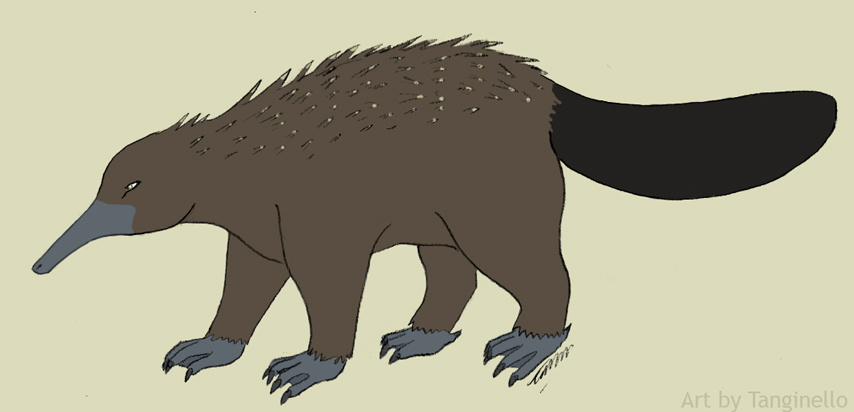 This was a hybrid I had drawn, as I thought that the only two monotreme mammals together breed together would like pretty cool. I call him Dav Patin, a mix of platypus and enchidna!