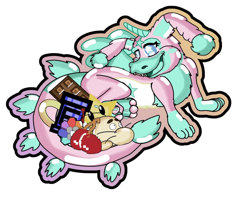 Dragons LOVE hoarding stuff and angel dragons are no exception! Check out Spun Sugar the angel dragon's hoard of video game power ups and items. Can you name any of them?