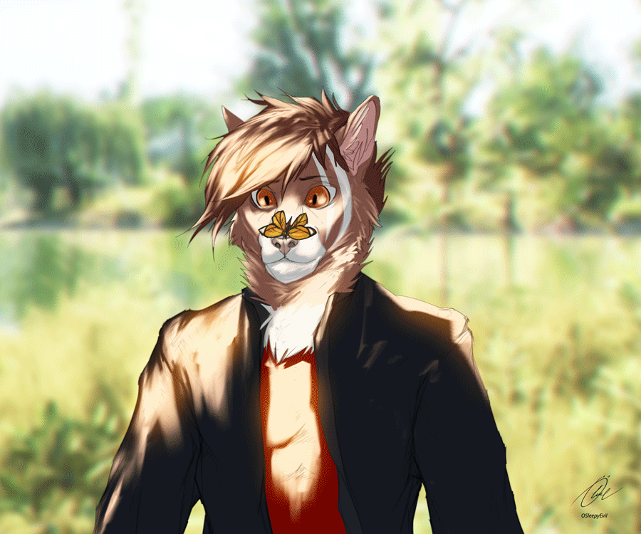 Cute art/animation of a butterfly landing on a lucky canine's nose. Done by osleepyevil