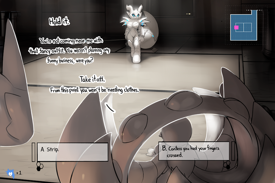 The being who has Jingle tells you to stop and asks you to remove your suit. You cease going towards them a few steps from where you started.'
