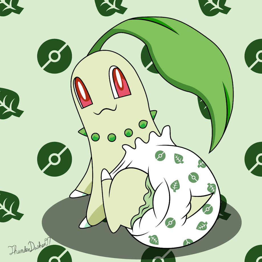 This was based on a sketch I did in 2019 and digitalized it. Since then, it's been sitting around, mostly finished with the exception of the background. I had also done a drawing of Jirachi around the same time, but I only did Chikorita because I liked it more. I still prefer my Cyndaquil from Pokemon Gold version.