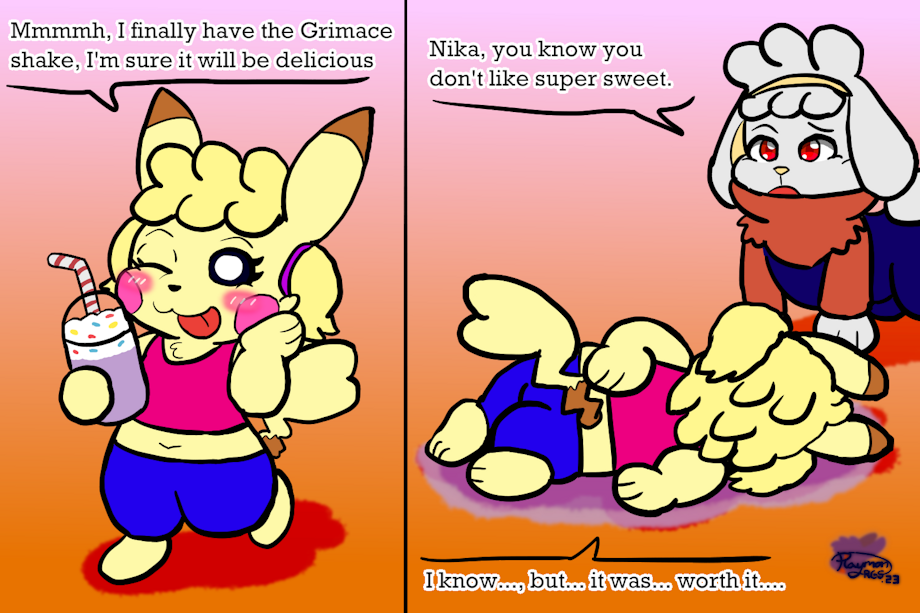 Nika has bought the famous Grimace milkshake to try it, but she fails to survive.