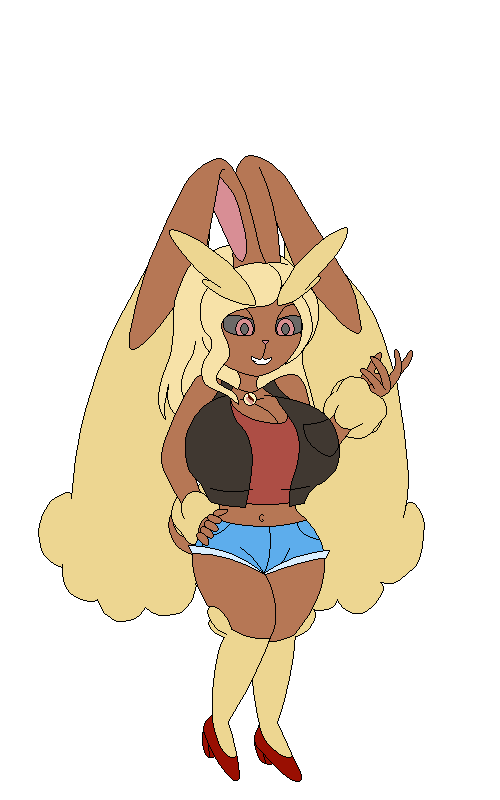 Here is Shannon Lopunny, a new girl I've designed and a close friends of the Velusons. Since 2023 is the year of the rabbit, I thought it would be fitting to have one of my first OC uploaded this year would be a Lopunny. Anyways, please comment your opinions and let me know what you think of her.