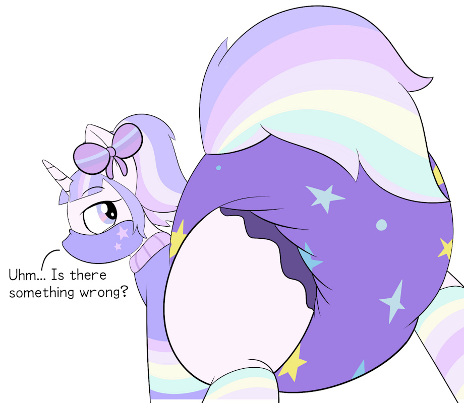 Looks like we got a cute pic of Marshmallow Dream showing off her diapered bum to someone who wanted to see the design on her diaper though I don't think that she would turn around and show her butt