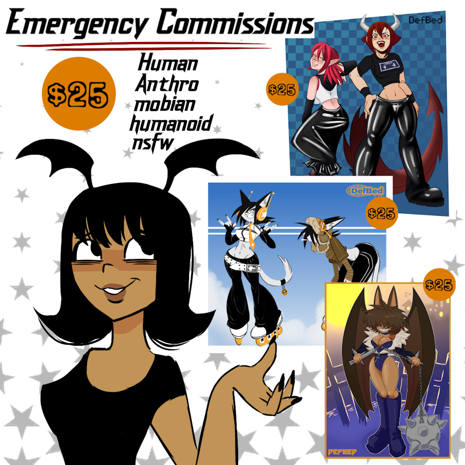 Hello! I find myself currently facing financial challenges, which have led me to the point where I need to take immediate action to overcome them. In this pressing situation, I have made the decision to offer emergency commissions as a means to generate some much-needed income. . Each commission will not only provide a lifeline for my financial stability but also enable me to continue pursuing my passion while navigating through these unforeseen circumstances. I am grateful for any opportunity to showcase my abilities and contribute to the lives of others, and I look forward to the possibility of collaborating with those who value my creativity and are willing to lend a helping hand. Thank you ^^!!