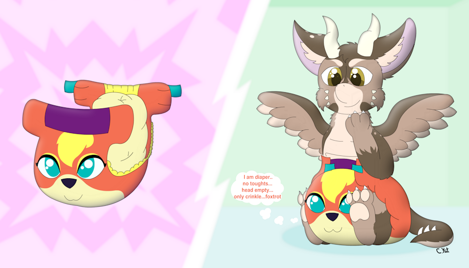 with my char Long the dutchy wearing diffrent diapers most of which are tfed diapers 1st 1 is a normal diaper 2nd is a tyal the dragon diaper 3rd is his lovly mate Celes Gem the dragonair diaper 4th is his primarina mate Lauren Gem the primarina 5th is Datahazard the guilmon 6th is Mattiney ( hybrid that became its own character after Whitney's soul left matts body and she became Mattiney ) 7th Nevah Gem the huskyvee 8th Audie 9th Skye 10th Freya 11 Kamea Gem the brionne (updated) 12 cassie from dragon tales 13 kolana ( tails chris worgen character on wow) and shes a very good diaper puppy 14 Myu, tails230 mew char 15 tails230 character chis bondie as a diaper. 16 Tails230 character chris as a skun and a diaper :D 17 Azer the Hisuian Typhlosion 18 bastion the dragonite Long is me Tyal belongs to