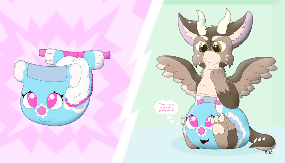 This collection contain Dutcy Long wearing a bunch of characters transformed into diapers! All with their own feel and comment towards the baby draggy.