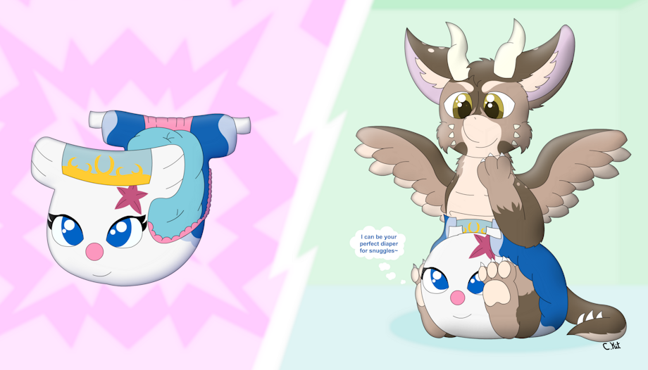 This collection contain Dutcy Long wearing a bunch of characters transformed into diapers! All with their own feel and comment towards the baby draggy.