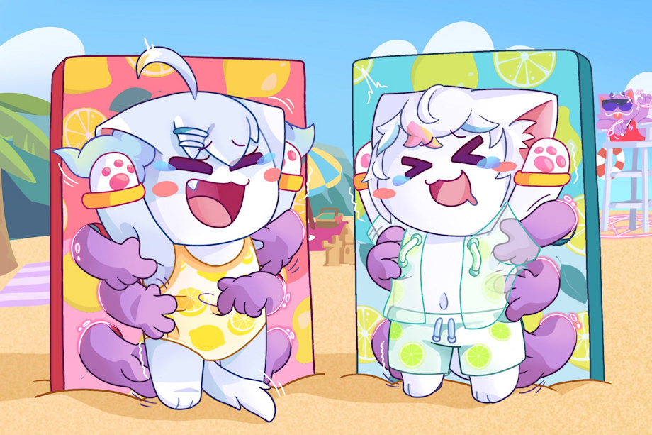 Waking up on a game show punishment board, even thought there's only one other cat on the beach. She has enough magic to make you laugh so loud that it attracts others to continue the relay