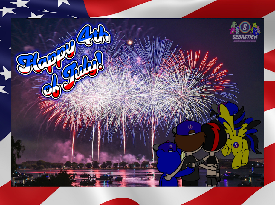 Here, to celebrate the 4th of July, it's a drawing featuring Mr.S (Seb), his girlfriend Chrisi and his two pets Creative Bear and PonySeb 2.0, who are watching a magnificent 4th of July fireworks.