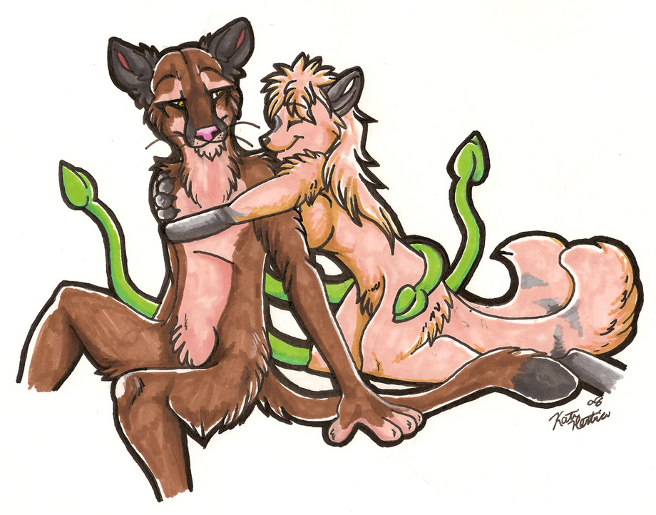 I'm terrible with names and can never figure out artist's signatures so if any one can tell me who did this one, it'd help. Got it done at Anthrocon a couple years back. Its Ropes and Kirara (from inuyasha). Ya I know she's not huge with fangs and all but I saw a pic of her like this and thought it was cute too.