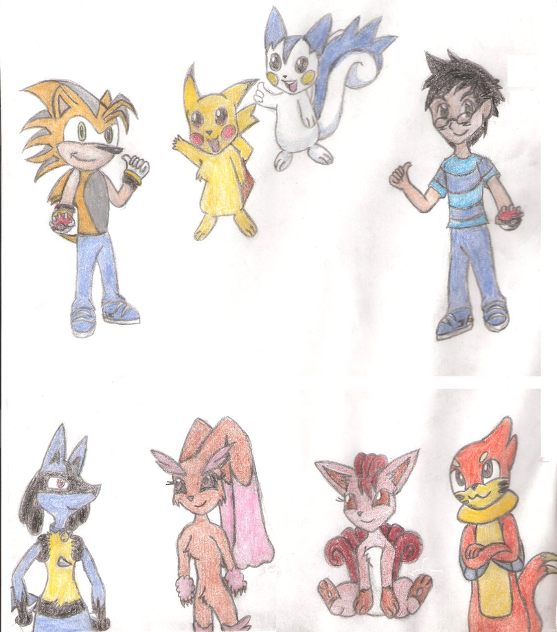 This is a picture I drew of my Pokemon team and me as a Pokemon trainer too,I hope you like it. =)