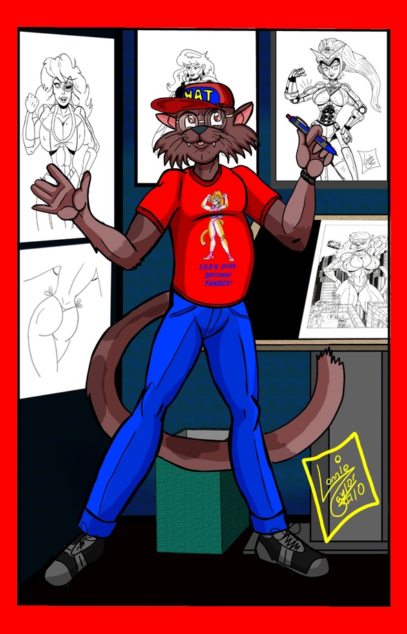 Here he's in his studio surrounded by the things he loves... His art and Britanny from Gold Digger and with his magic tech. pencil (which allows him to create portals to other realities.) who know.. he might actually meet britanny one day.^^
