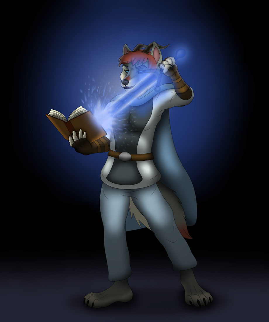 For Byakko110 on FA of his character Arcanaloth, pulling a magic sword out of a book, as they tend to do.
