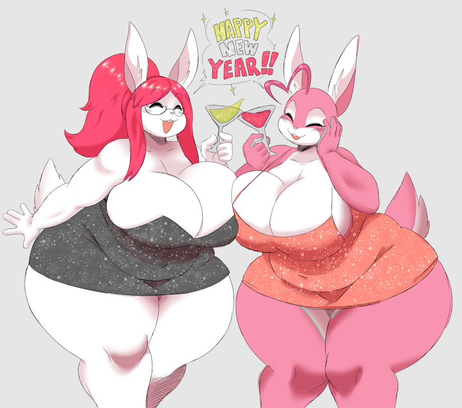 Mallows (Left) and Kiwi (Right), my two big bunny girls, are together again, raising a glass for the start of another new year and, most noticeably, a brand new decade.