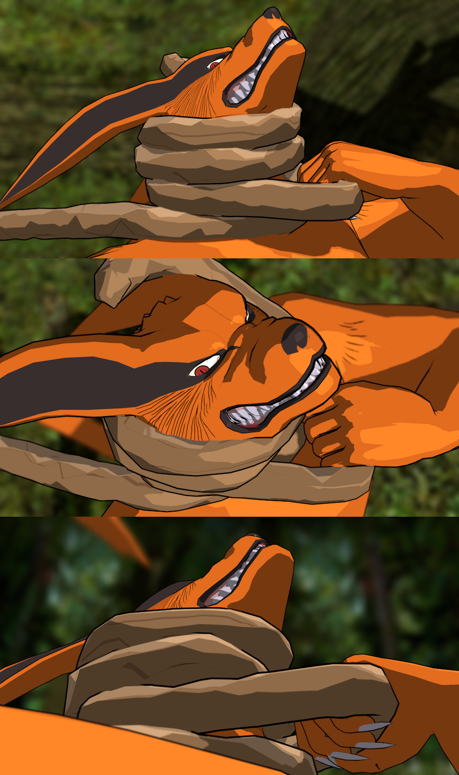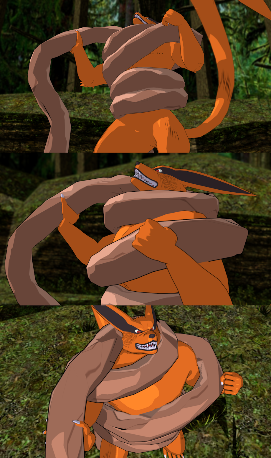 I modeled a simple lil tentacle, at first with the intent of it being wood style/mokuton jutsu, buuut yeah I feel like it ended up working a bit better as green vines and such x3 anyway, tangled Kurama in em good.
