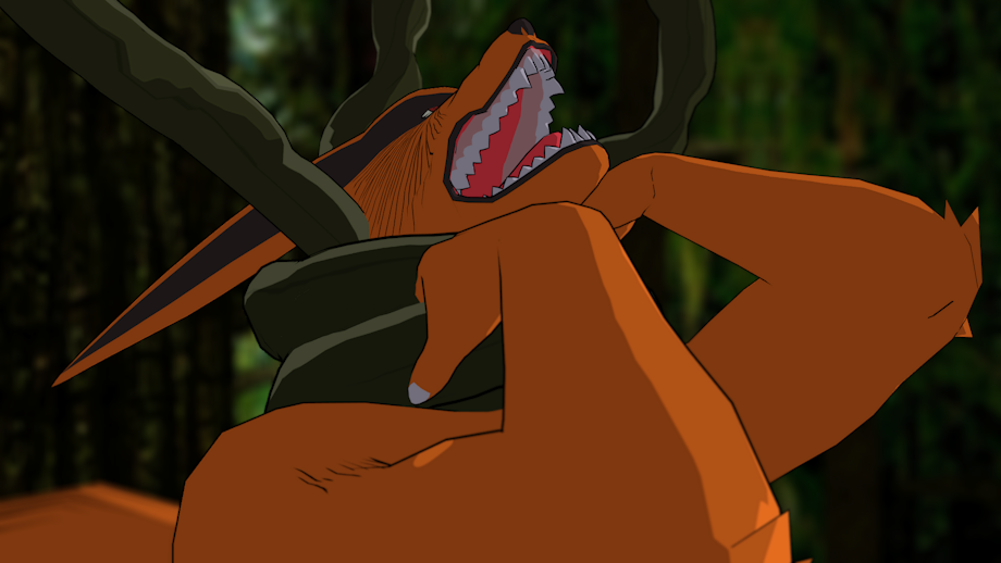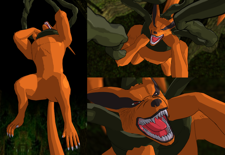 I modeled a simple lil tentacle, at first with the intent of it being wood style/mokuton jutsu, buuut yeah I feel like it ended up working a bit better as green vines and such x3 anyway, tangled Kurama in em good.