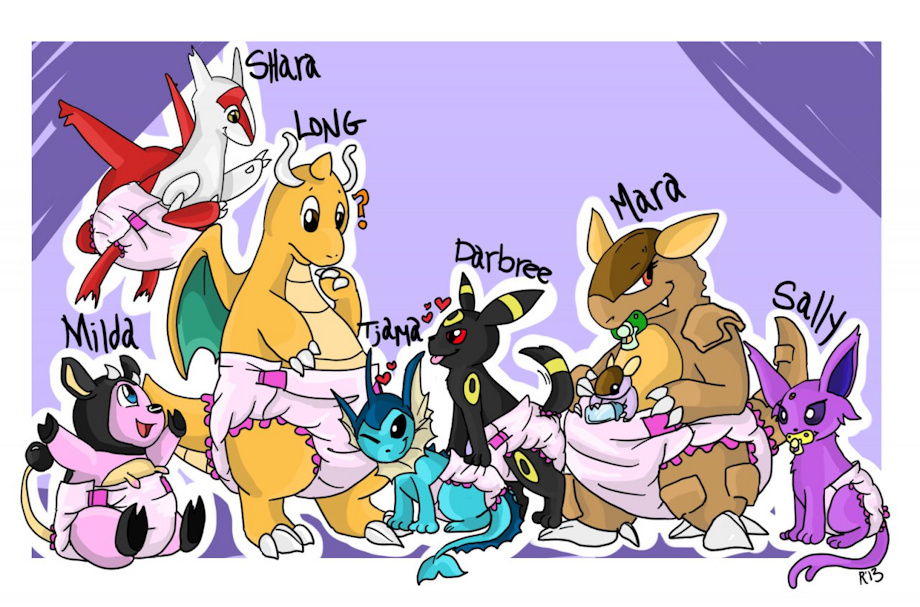 with Sara Gem the latias and Sonar Gem the latios turning into a pair of diapers for Long the dragonite and seems Zala Gem the zoroark joins in to :)