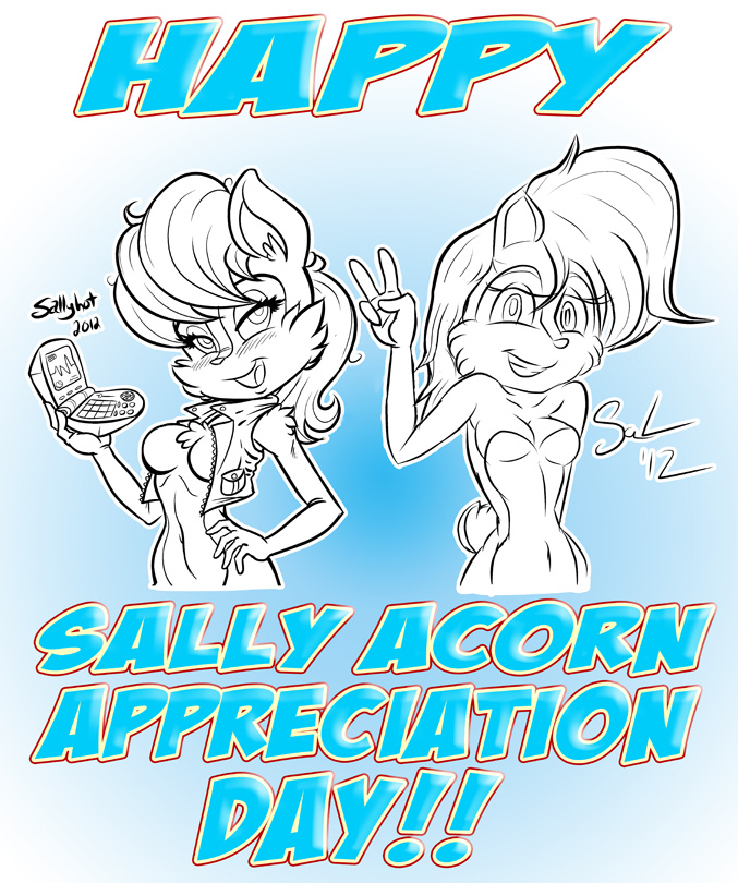 Just in time! Wasn't sure if me and my girl would make it, but here she is! :) Our contribution for the Sally Acorn Appreciation day! We are making a banner for our new website www.teamacorn.net and so we thought something with both our very different versions of Sally, drawn side by side, would be interesting! So it's not complete yet, but soon. :) Anyways, Happy Sally Acorn Appreciation Day to everybody who digs this character! You can bet we'll be bette prepared for it next year. ;)