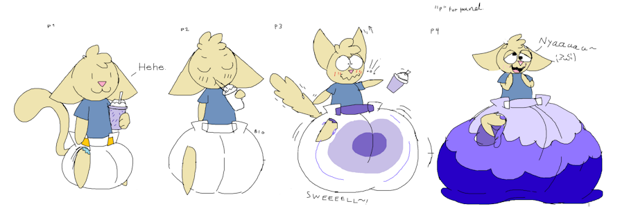 It's implied that he uh... excited himself a lot~ That he's now somewhat stuck in a swelled up purple diaper.