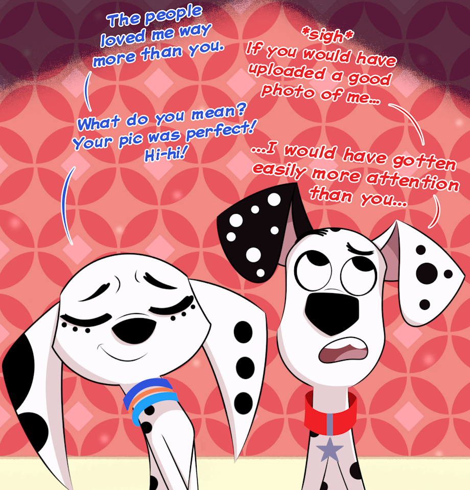 Dylan and Dolly REALLY want to know who the cuter one is! Dolly seems to be very sure that she wins that price easily, but Dylan is visibly annoyed by her bragging and, well, the fact that she posted a smeared photo of him x). Now they are betting for real! Whoever wins, will be the other one's servant for the day!