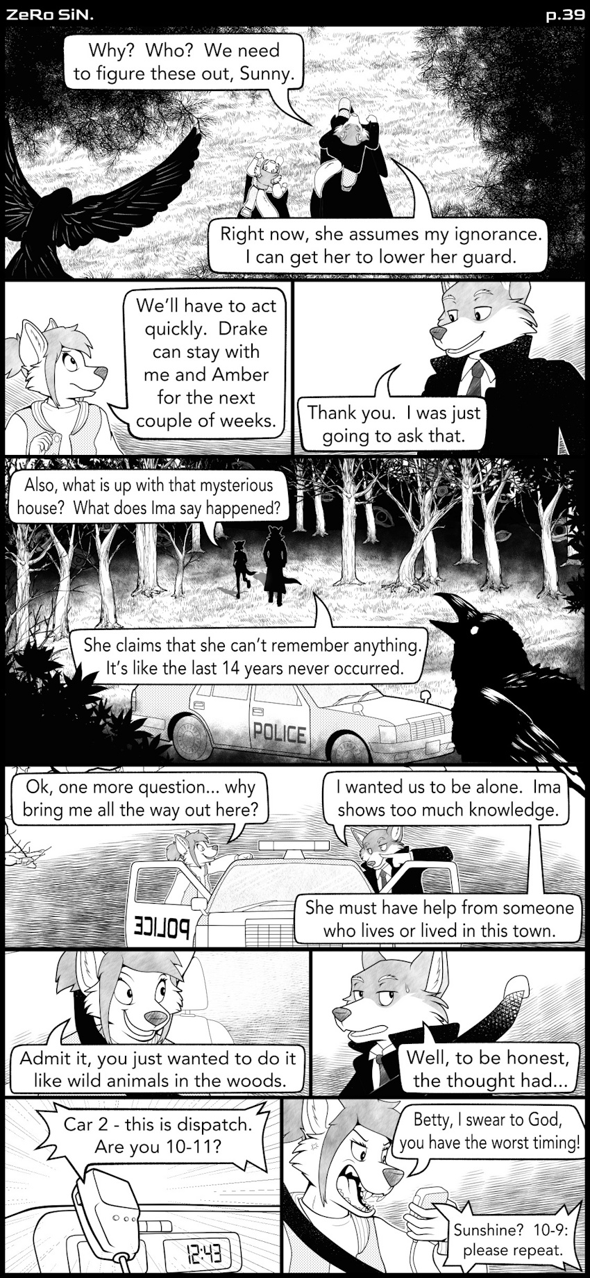 It’s more of a mistake. When I started make some of the art I was tempted to use a ‘middle grey’ to put a shading separation between the black and white elements. Instead, I settled on using tones and thick shadows for shading. But, you can see me experimenting here and on page 8.