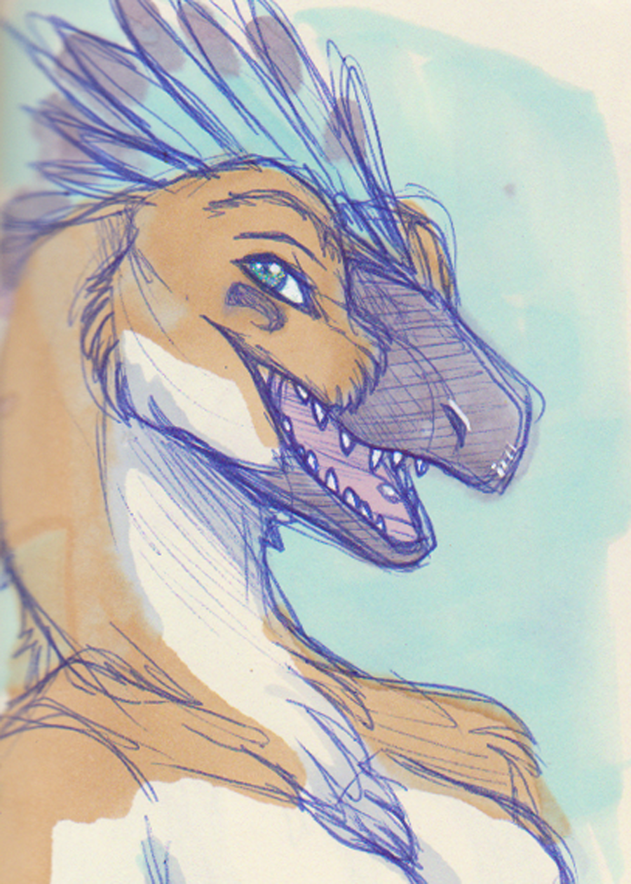 Zasii, a friendly deinonychus greets you.