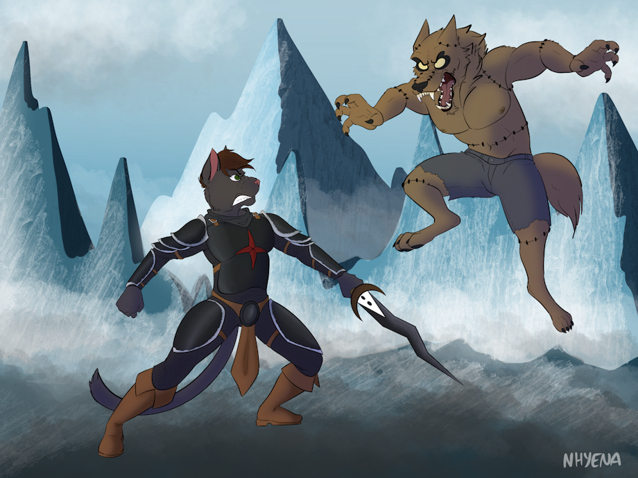 Looks like while Kain was out exploring an area he was looking for some item or entrance when this freakish looking Wolf thing Leaped out trying to take a swipe at him! Whatever this thing was, it wasn’t going to let Kain mosey on by, so he readies himself to have to fight the unhappy Wolf creature…