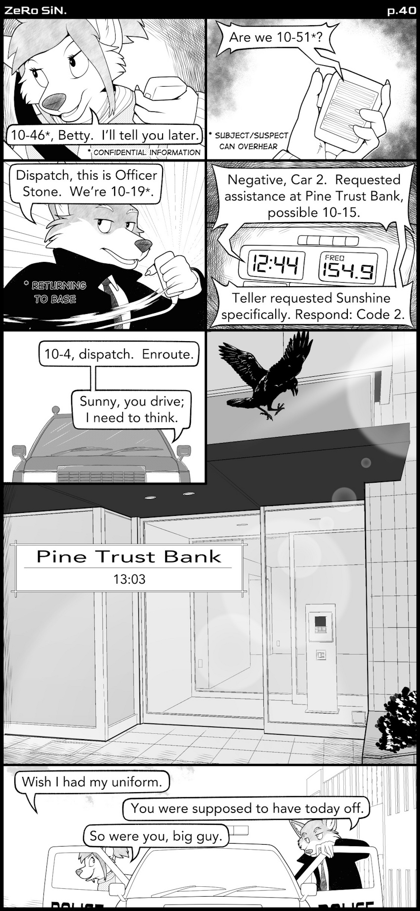 1) That otter's pretty cute, and I feel guilty/speciesist for thinking that. 2) I love that her speech bubble is half-covering Rolex's deadpan serious expression; it knocks the wind out of his sails very effectively! 3) Nerd shirt is indeed hilarious and right to the point! 4) Think that might be a mistake on that panel though; shouldn't it say 'make a deposit'? 5) Now that I think about it, this still makes Sarah's specific request a little strange, but now not as much, considering their familiar demeanor. 6) God gave it to him? This issue is spreading through the town fast. (Why am I getting flashbacks of Echo?...) 😬