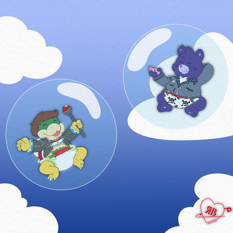 Heya buds! In this one, I figured to pay a visit to a nostalgic place that I heard from a long time ago called Care-A-Lot to celebrate. While I am surprised to see many familiar faces, I did get to see new ones, including such as Young-at-Heart Bear(of whom is my caretaker), Mystic Heart Bear, and even a new close bud of whom is a rambunctious rebel known as Punk Heart Bear. After getting to know each other more, we figured we have a fun playdate running around in the Kingdom of Caring, stuffing our faces and cake(Yes, they knew it was my Birthday. X3 ) and causing mischief wherever we go. Of course when he was curious to know about my magic wand to cast a spell, I gave it a demonstration, which we both floated off in bubbles while having a blast, which in thus, made it a lot slippery and harder for the Care Bears to catch us. So hopefully we end up running out of energy before things gets chaotic in a fun way. Anyways, hope you buds enjoyed it! X3