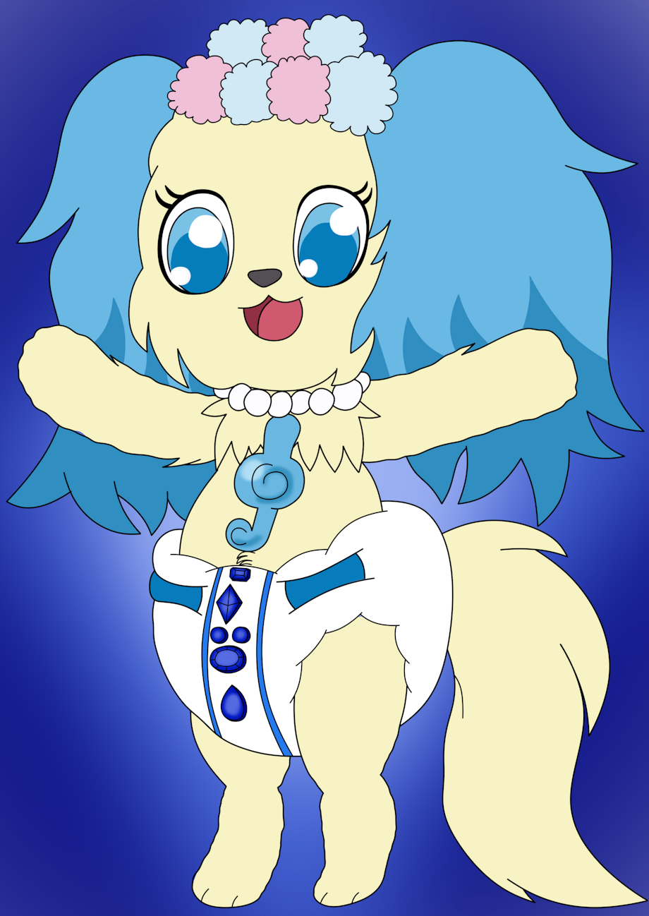 Gift art for lillilly to show my appreciation for her taking the time to do my requests during her weekly livestream. ^^ Here's Sapphie from the anime Jewelpets as a puppy, wearing a sapphire encrusted diaper and wanting a hug or belly rubs from the viewer. XD I've never seen the show myself, but the designs of the characters are so cute, so I couldn't turn down the suggestion of drawing one of them. X3