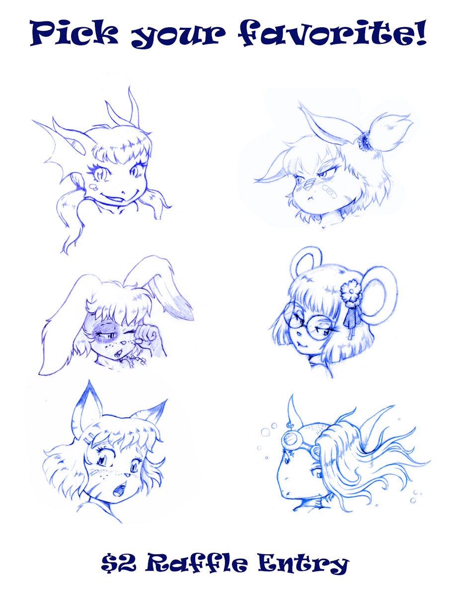 I've decided to try something new and hold commission art raffle. For the price of soda ($2) you will be entered into raffle for a chance to win art featuring character of yours with a character of mine. You get to choose theme and subject of the artwork. Any character of mine that you like to have your character to hang out with, your not limited to ones shown in the image above. Mature and adult theme artwork will be allowed with most characters, with only a few exceptions.