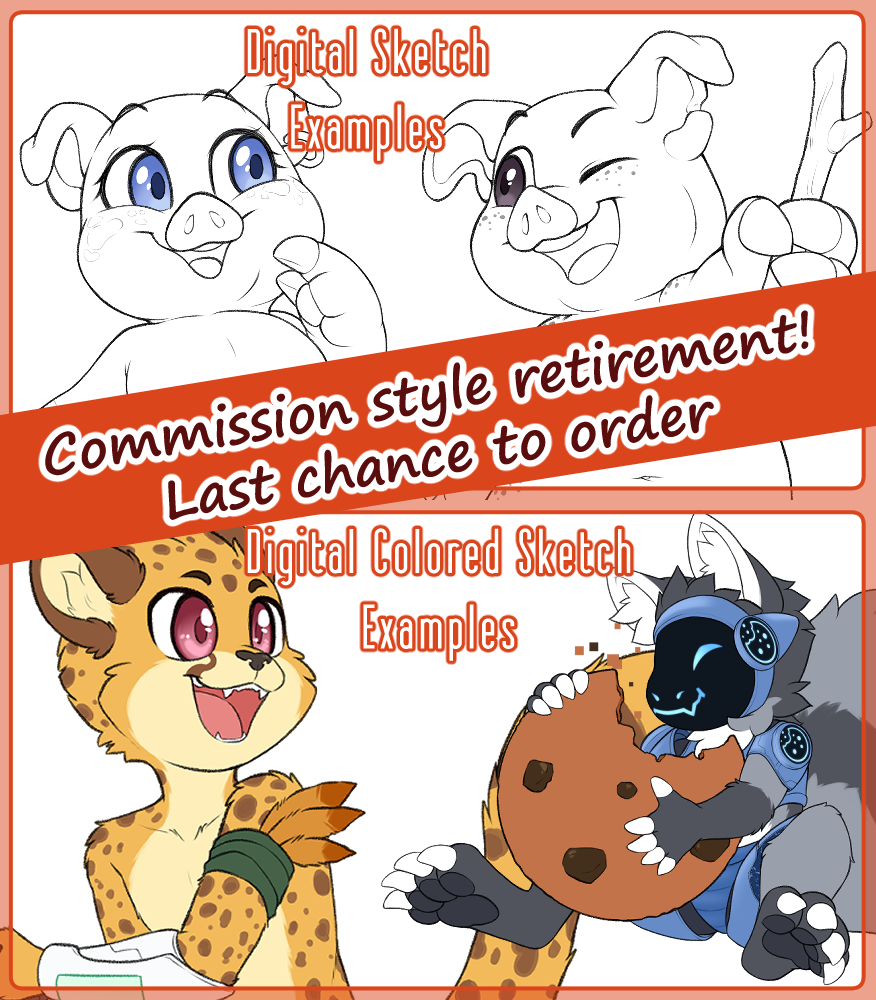 Attention! I am retiring the current commission style at the end of July, and offering something new starting in August. If you're interested in getting a commission in the pencil-textured, flat color style, this is your last chance to do so for a while. Head over to my journal post for details and links to the google form. Thanks!