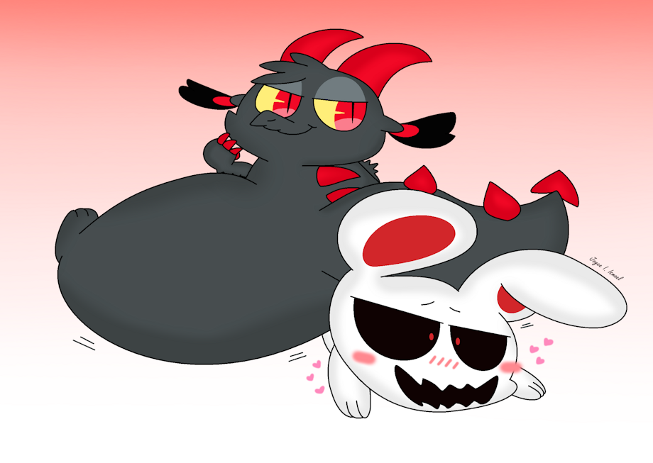 Anyone who watches Chikn Nuggit will understand what I'm getting at here... Evil Fwench Fwy butt-squashing their love partner Iscream... and the little bunny demon loves it. 😆