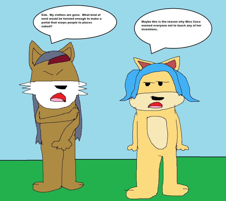 Brittle did not listen to Coco's warning not to touch her inventions and messed with a prototype portal machine that warped her and Pioni to the open without their clothes.