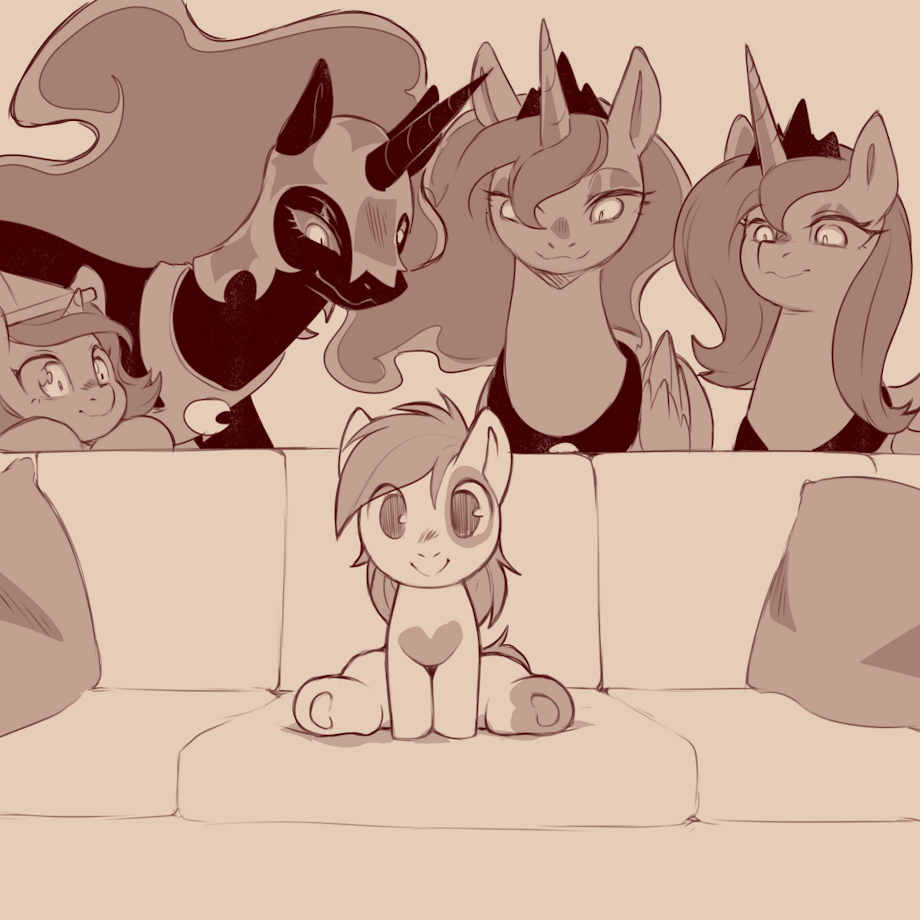 I'm kind of hoping for a expectation reversal, where there are 3 pairs of legs sticking out above the back of the couch, quivering and damp, meanwhile Pip is sitting in the exact same spot, with a bigger smile. (Woona is sitting on the couch next to him, with a video game, cause she seems to innocent for what happened back there.)