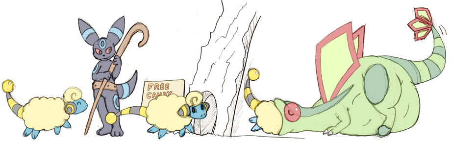 My magnificent umbreon leading a flock of mareep to a cave of wonders