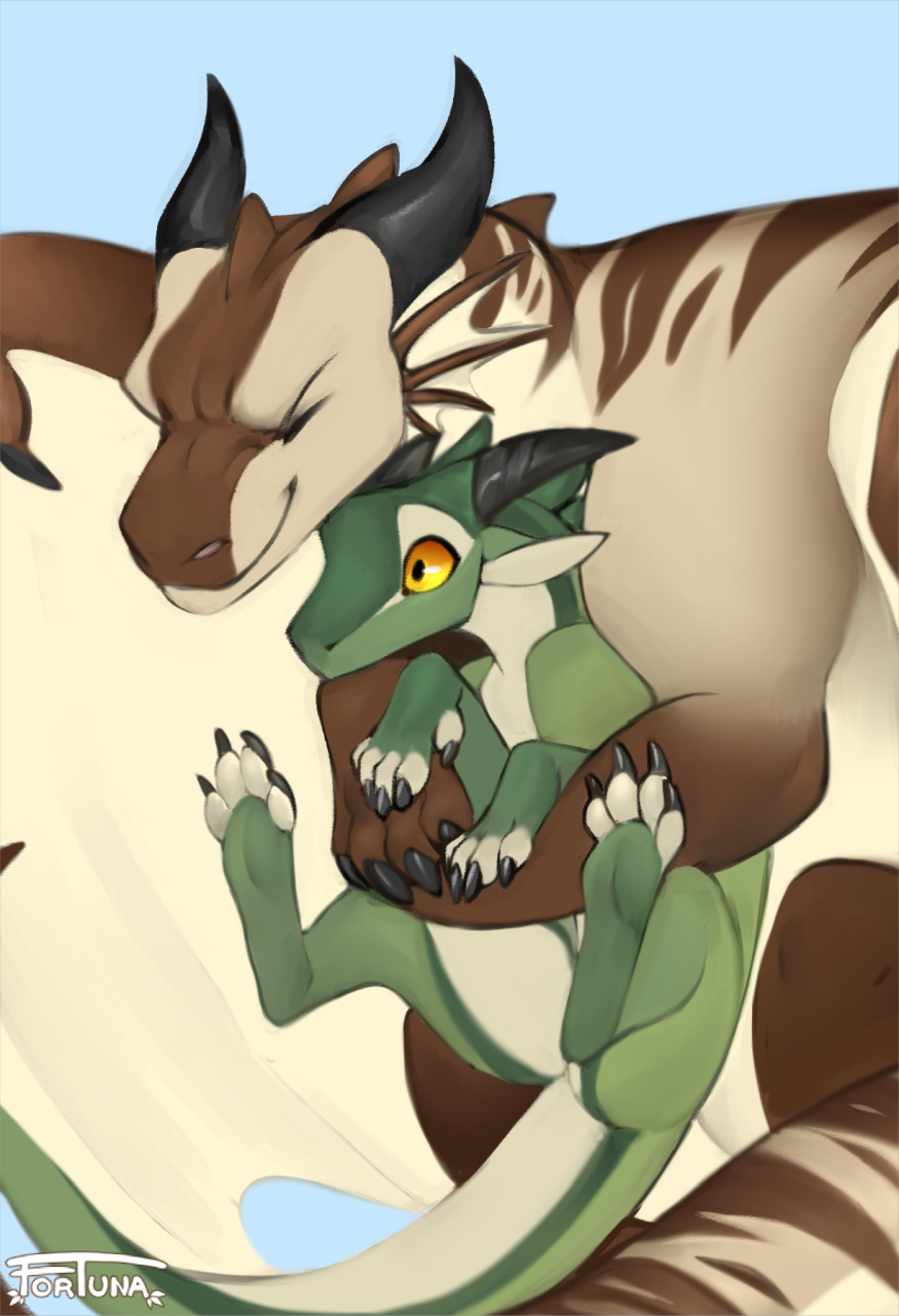 Damn she's so adorable. And so is Fortuna. How does she draw such cute? Especially when a dragon is hugging on her while she tries to draw... my cute aggression is triggered by the artist too. ❤️