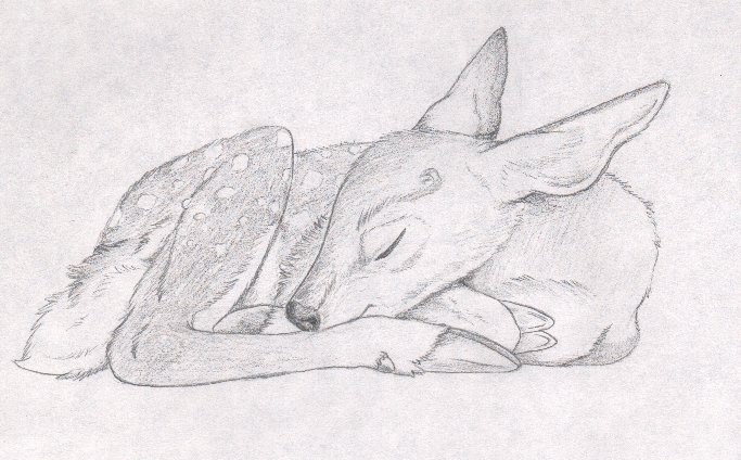 One of the sketches i made and brought to the con, sleeping baby deer.