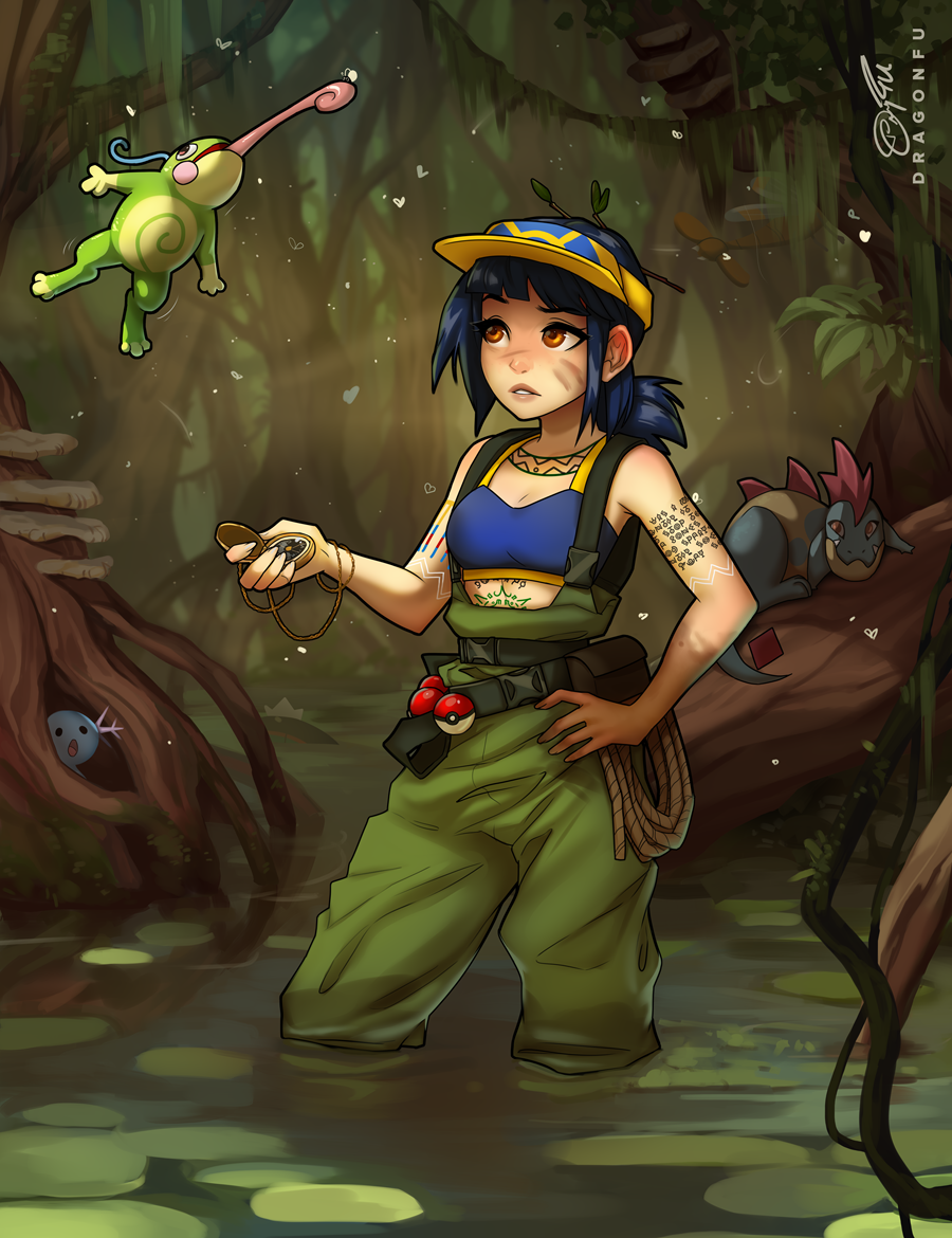 Comm for SilverFox442, this time Kate ventures into a swamp! Can you identify the 5 Pokemon? :0