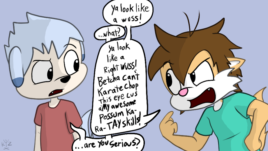 Me "I'm gonna take this foot (points to my foot) and put is across your face with it"
