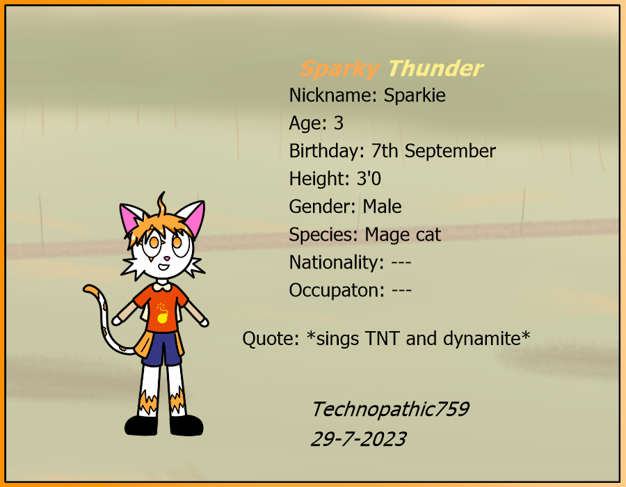 Name: Sparky Thunder Species: Mage Cat