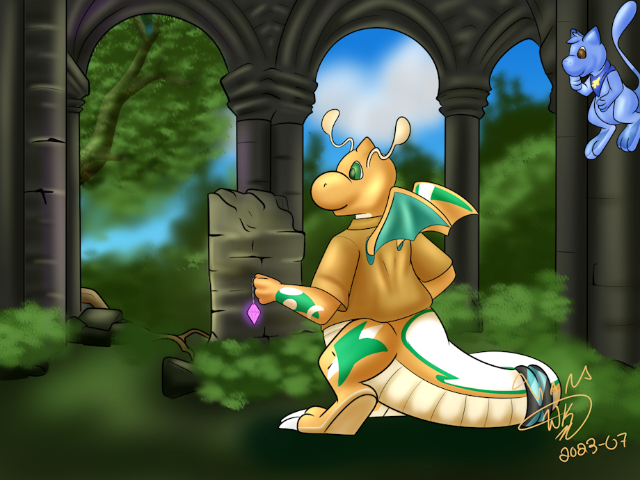 Borealis early into his Adventuring Career Was tasked with Exploring a Ruin Called "Ampapharion" The Best understanding was This was the old capital of a kingdom of Ampharos that lay in ruin as the kingdom fell thousands of years prior, Upon going there There turns out to be a curious little (but familiar) mythical tasked with guarding the ruins from would be tomb raiders