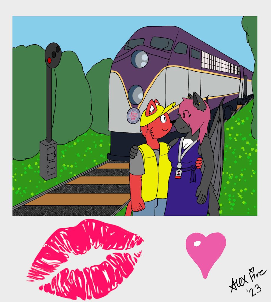 . based on a REAL polaroid picture. He took a picture of us at a transportation museum before we were dating. I made some compositional changes, but it's the two of us together <3
