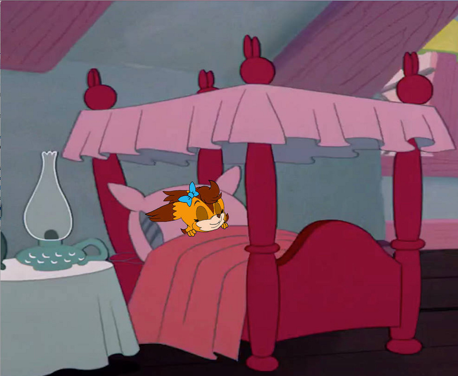 Polly Polaris is taking a nap in the bunny house from Disneys Alice and wonderland