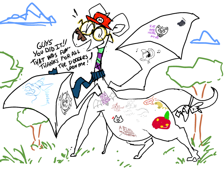 Drawy the Dragon has been painted all over and given fancy items to carry!! Thank you folks for participating in my little Art Event - enjoy Drawy in his final form!!!!