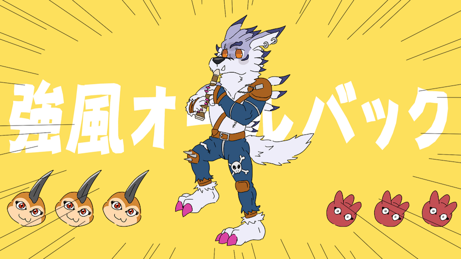 Picked Weregarurumon for no specific reason haha~ I dig the version without Tsunomon and Punimon (the small ones) more, buuut yeah the version with them is a bit more correct to the original.