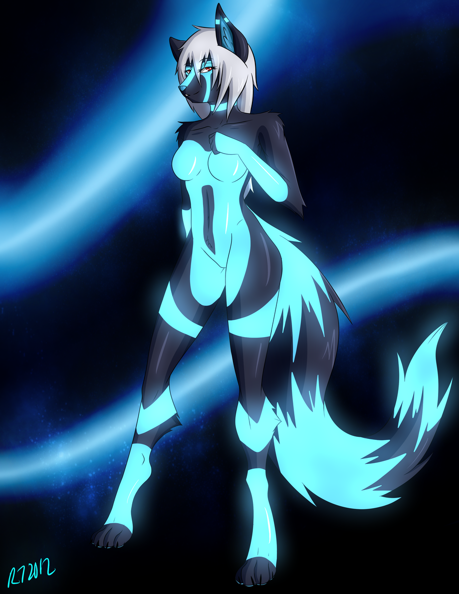 My character Eve, a wolf/raccoon hybrid that glows in the freaking dark